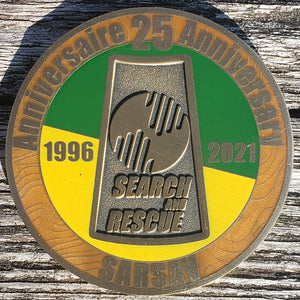 Created for SARSCENE2021. This unique coin is beautifully crafted, made in Canada and was designed by the Search And Rescue Saskatchewan Association of Volunteers (SARSAV) to celebrate our 25th year!