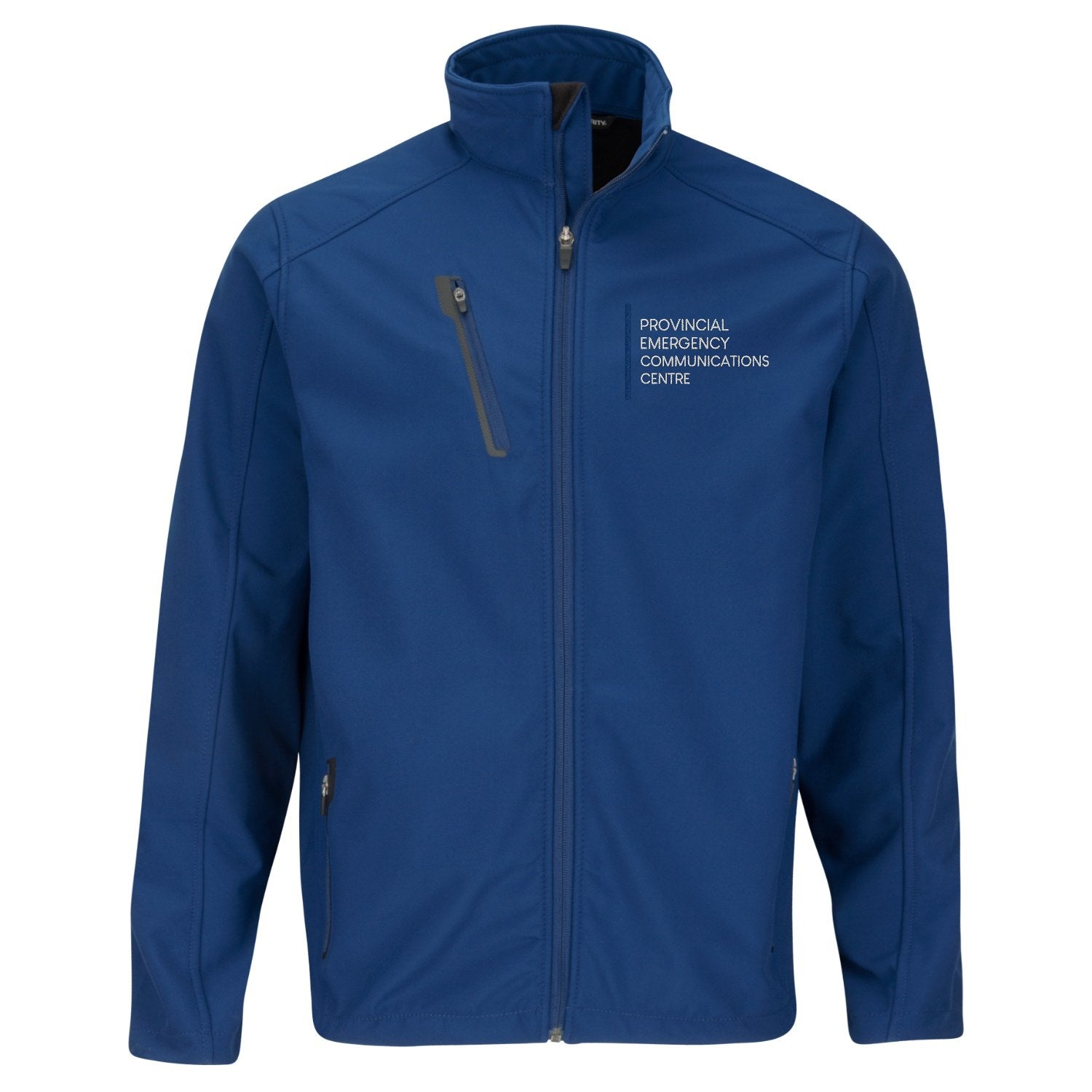 100% polyester woven shell bonded to a water-resistant film insert and a 100% polyester microfleece lining 1000MM fabric waterproof rating 1000G/M2 fabric breathability rating Zip-through cadet collar with chin guard Welded chest pocket Front zippered pouches