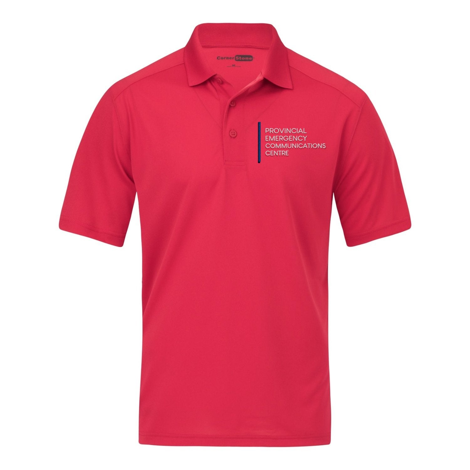 Men's Polo Shirt - PECC6.6-ounce snag-proof 100%polyesterWrinkle-resistantOdor-fightingMoisture-wickingDouble-needle stitching throughout3-button placket with dyed-to-match buttonsSet-in, open hem sleevesFlat knit collarSide ventsAvailable in Sizes Small-4XL