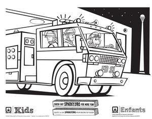 Looking for effective ways to teach fire safety to young audiences? Sparky® to the rescue! Jump on board with Sparky and a team of first responders as they race off in his fire engine. The scene sets the stage for discussions on the roles of firefighters in your community and the vehicles and equipment they use when responding to an emergency. The new Sparky Fire Truck Coloring Pad is an economical way to add a fun exercise or giveaway to your events.