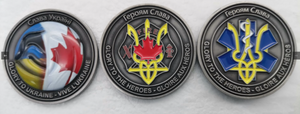 - Coins: 1.75-inch (44mm) unique custom designs, featuring the Canadian and Ukrainian flags intertwined.